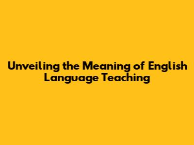 What is English Language Teaching? Defining the Core Concepts