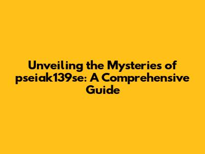 Demystifying pseiak139se: What Exactly Is It?