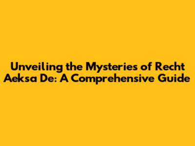 Hey guys! Ever stumbled upon something that just piques your curiosity and sends you down a rabbit hole of discovery? That's what happened to me when I first came across Recht Aeksa De. The name itself is intriguing, isn't it? Well, buckle up, because we're about to dive deep into the world of Recht Aeksa De, exploring its origins, meaning, and significance. This isn't just a casual read; we're going on an adventure to unravel the mysteries behind this fascinating concept. Ready to get started?
