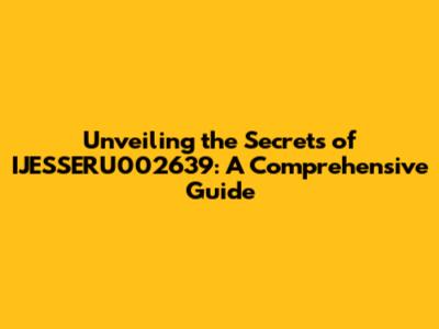 Hey everyone! Today, we're diving deep into the fascinating world of IJESSERU002639. This might sound like a bunch of random characters to some, but trust me, there's a lot more to it than meets the eye. We're going to break down everything you need to know, from the basics to the nitty-gritty details. So, grab a coffee (or your favorite beverage), and let's get started. This comprehensive guide will explore the ins and outs of IJESSERU002639, providing you with all the necessary information to understand its significance, application, and potential impact. We'll cover everything from its core functions and features to its real-world applications and future prospects. We'll explore the technical aspects, practical applications, and the overall influence of IJESSERU002639. Whether you're a seasoned expert or a curious newcomer, this guide aims to provide valuable insights and a deeper understanding of this intriguing subject.