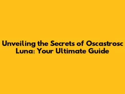 Demystifying Oscastrosc Luna: What's the Buzz About?
