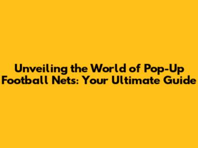 What Exactly Are Pop-Up Football Nets?