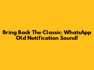 Bring Back The Classic: WhatsApp Old Notification Sound!
