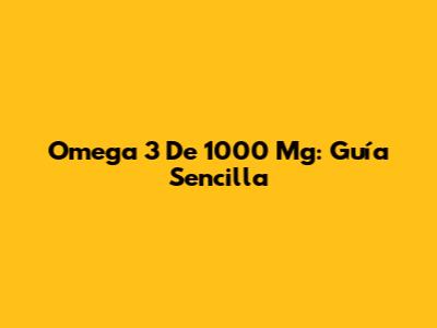 Omega 3 De 1000 Mg: Guía Sencilla