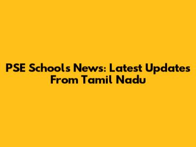 PSE Schools News: Latest Updates From Tamil Nadu