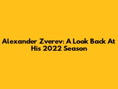 Alexander Zverev: A Look Back At His 2022 Season