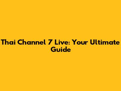 Official Ways to Watch Thai Channel 7 Live