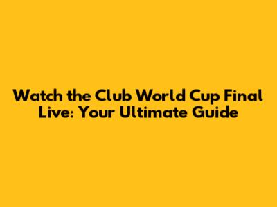 Hey everyone! Get ready, because the FIFA Club World Cup Final is almost here, and it's going to be epic! This is the ultimate showdown of club football, bringing together the best teams from all over the globe to battle it out for the title of world champions. Whether you're a die-hard fan or just love a good game, this guide will give you everything you need to know to watch the Club World Cup Final live, including where to find the action, what to expect from the teams, and why this tournament is so special. So, grab your snacks, settle in, and let's dive into the excitement!