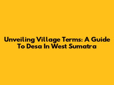 Unveiling Village Terms: A Guide To Desa In West Sumatra
