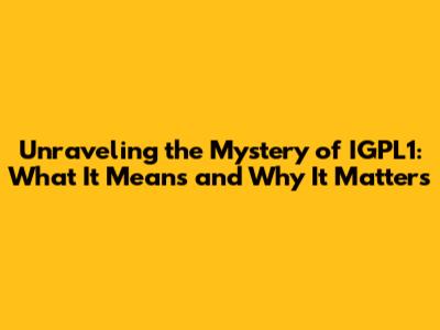 Unraveling the Mystery of IGPL1: What It Means and Why It Matters