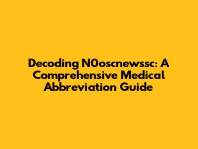 Decoding N0oscnewssc: A Comprehensive Medical Abbreviation Guide