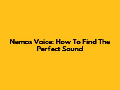 Nemo's Voice: How To Find The Perfect Sound