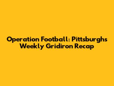 Operation Football: Pittsburgh's Weekly Gridiron Recap