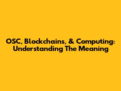 OSC, Blockchains, & Computing: Understanding The Meaning