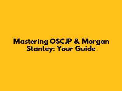 Mastering OSCJP & Morgan Stanley: Your Guide