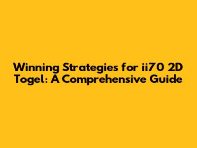 Smart Betting Strategies for ii70 2D Togel