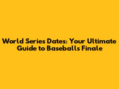 FAQs About World Series Dates