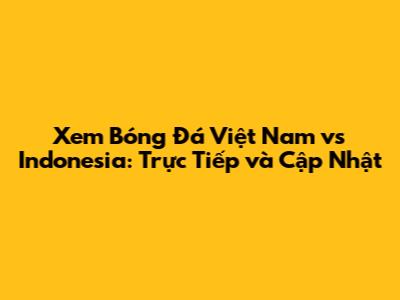 Cách Xem Trực Tiếp Trận Đấu Việt Nam vs Indonesia