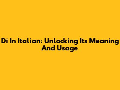 Di In Italian: Unlocking Its Meaning And Usage