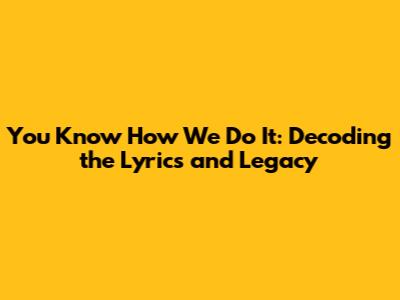 Hey guys! Ever found yourself bobbing your head to a classic track, wondering about its origins and what the artist was really trying to say? Well, let's dive deep into one such anthem: "You Know How We Do It" by Ice Cube. This isn't just a song; it's a snapshot of a moment in time, a reflection of a culture, and a testament to the power of storytelling through music. We'll break down the lyrics, explore the meaning behind them, and check out the lasting impact this track has had. So, put on your headphones and get ready for a lyrical journey! Let's get started.