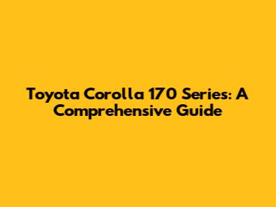 Toyota Corolla 170 Series: A Comprehensive Guide