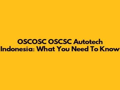 OSCOSC OSCSC Autotech Indonesia: What You Need To Know